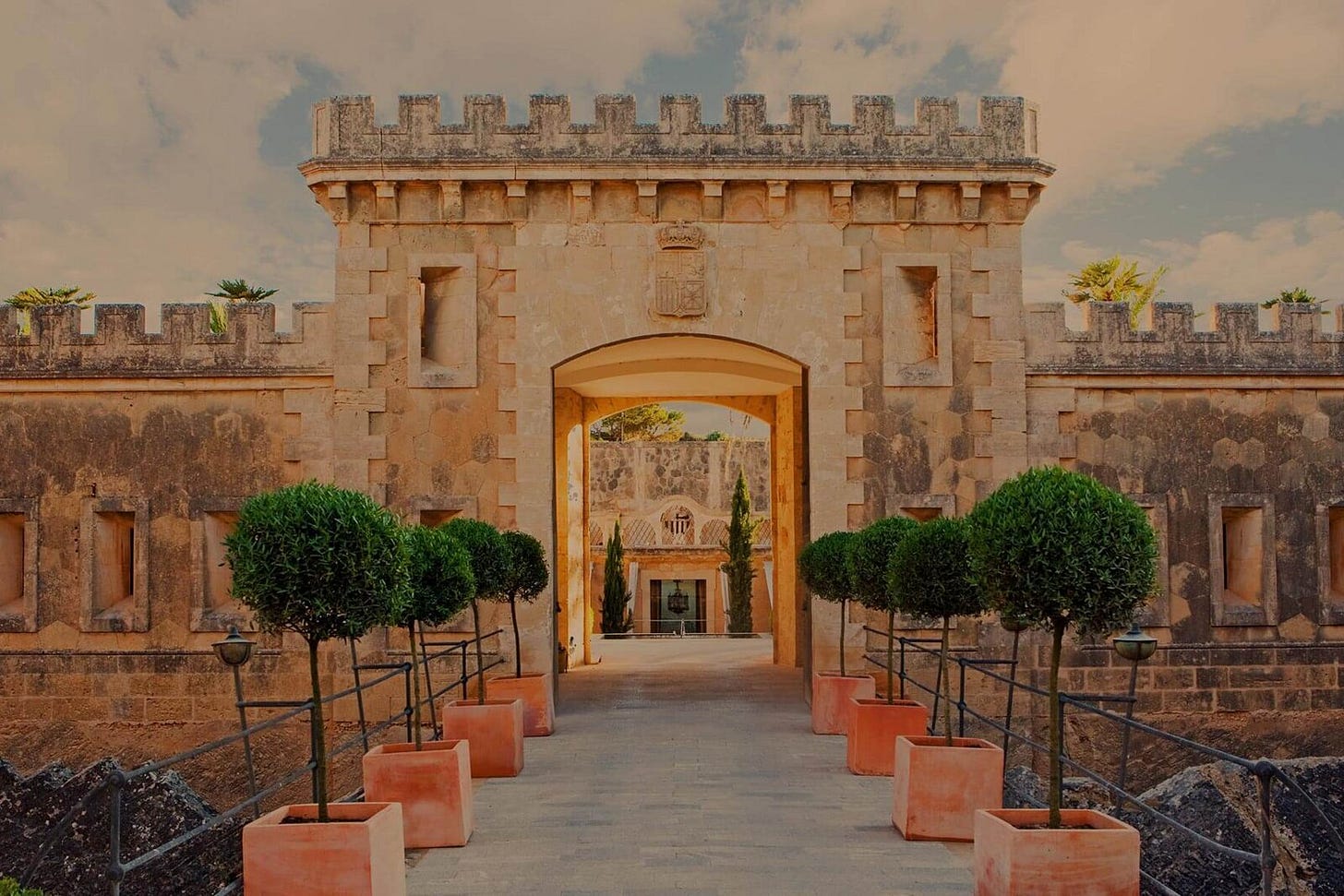 Restored by architect Antonio Obrador, the property preserves original military features like drawbridges and bunkers while incorporating Moroccan-inspired interior design.