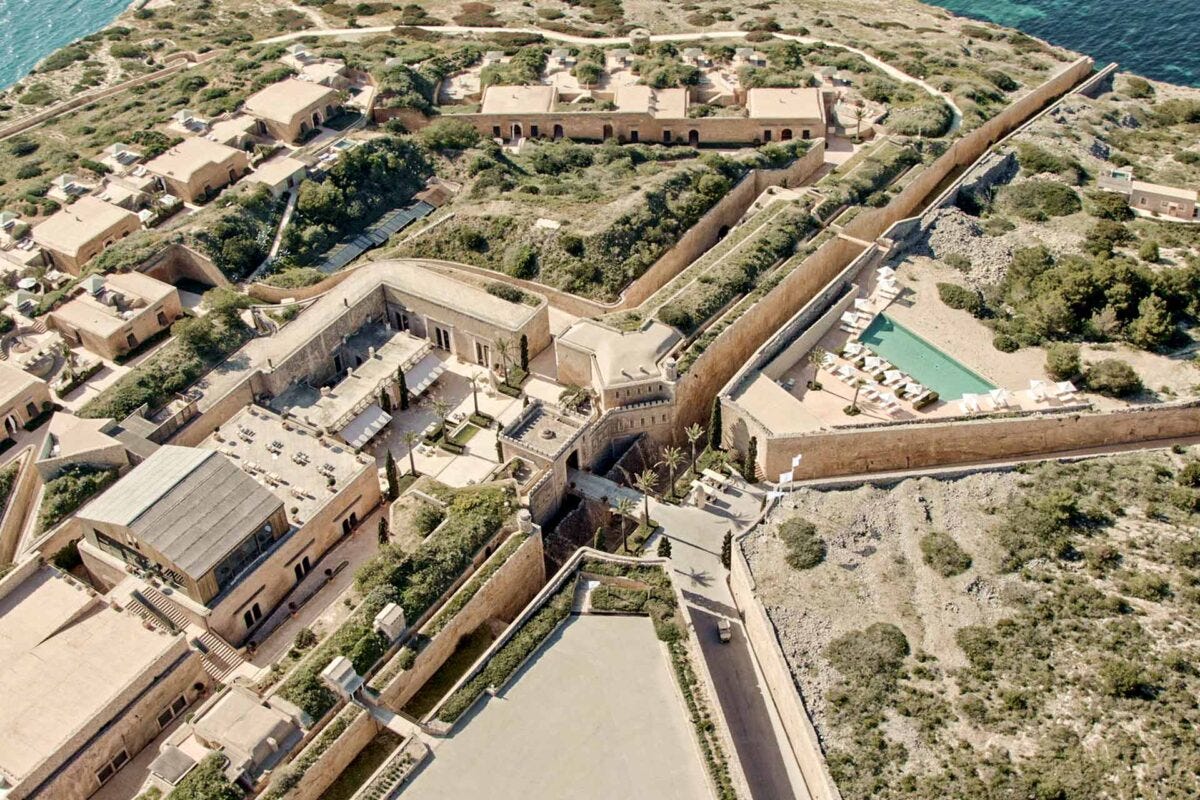 The spa sits inside former military vaults and focuses on simple, high-quality treatments rooted in the Mediterranean. You’ll also find an open-air gym, plenty of quiet terraces, and space to fully unplug.
