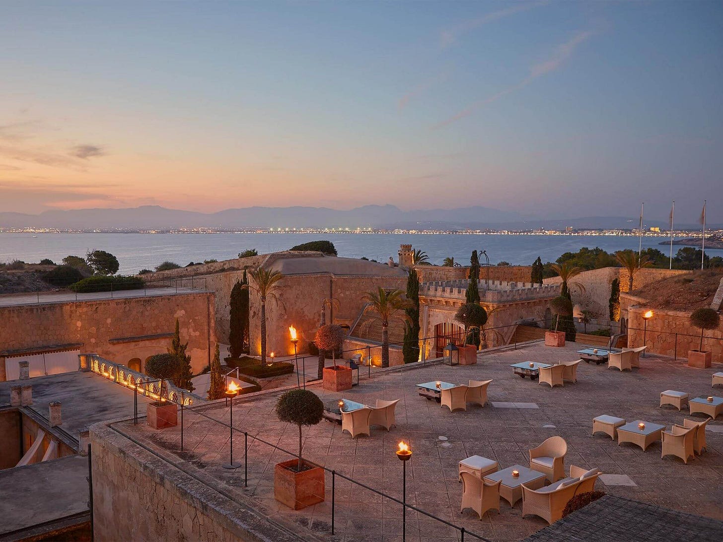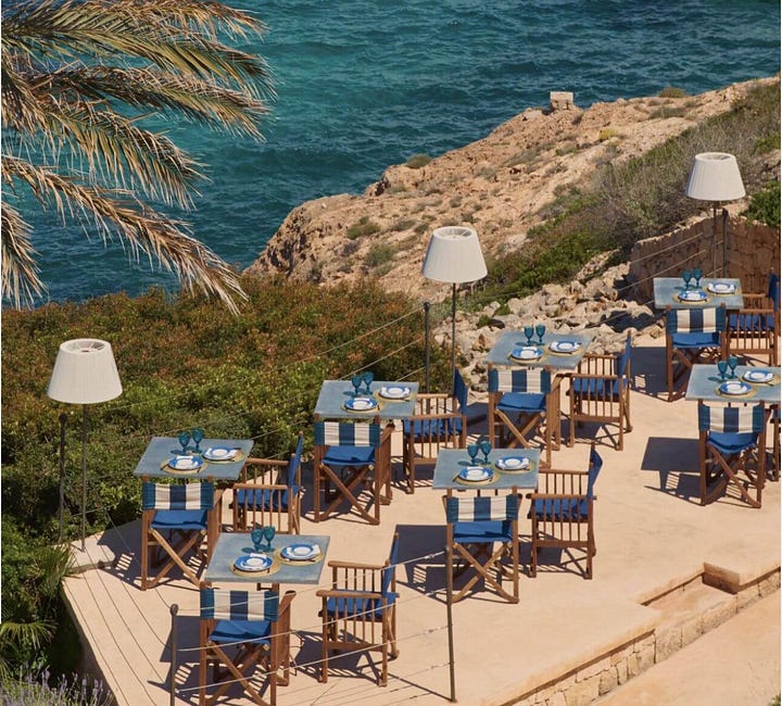Cap Rocat’s rooms and grounds aren’t the only thing to marvel at because the food is just as incredible. At La Fortaleza, dinner feels cinematic, intimate, and a little dramatic. The chef, Víctor García, takes Mediterranean and Majorcan classics and presents them as tasting menus that feel thoughtful. Think pristine seafood, island produce, and vaulted stone glowing in the most beautiful light. Inside is hushed and romantic; on the rooftop, it’s sea views and candlelight. If you’re planning a trip to Mallorca, this is the finale that you talk about long after you’ve departed.